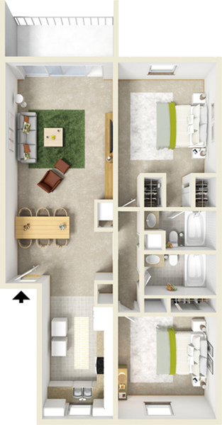 2 Bed | 2 Bath | 1,050 Sq. Ft.*